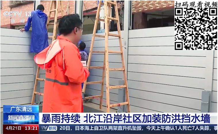 4月18日起,清遠(yuǎn)境內(nèi)持續(xù)受強(qiáng)降雨影響,大部分地區(qū)受到洪水影響,飛來峽鎮(zhèn)21日凌晨開始安裝移動(dòng)防洪墻。