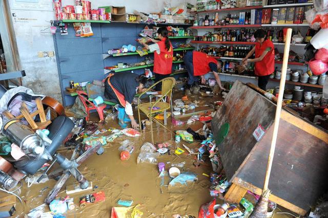 暴雨過后商鋪內的衛(wèi)生打掃、貨品更換擺放都是頭疼的問題。