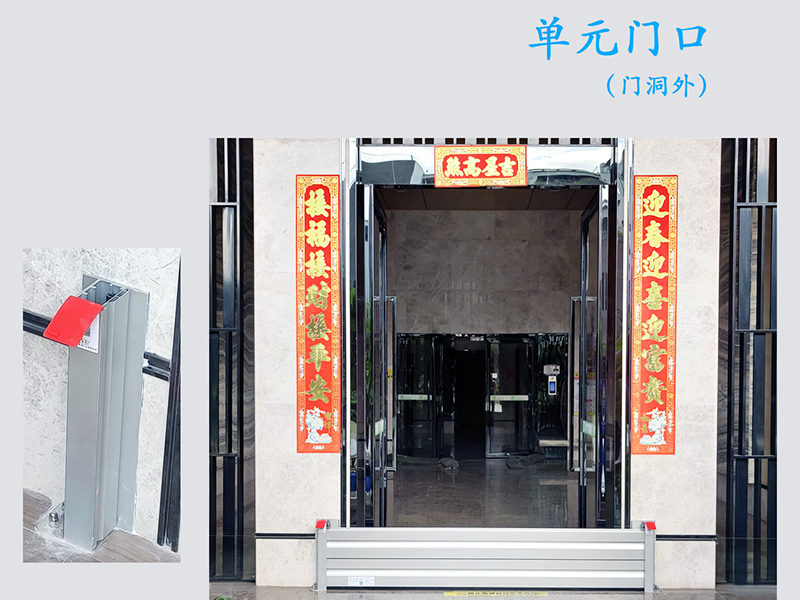 產(chǎn)品說(shuō)明:一套鋁合金組合式防水門主要包含邊柱、地軌、擋板、中柱、下壓件、背擋、防水膠條及其零配件。