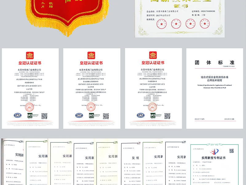 【一套鋁合金組合式防水門標(biāo)配必須包含】地軌、邊柱、擋板、下壓件、防水膠條、中柱、背擋、專用扳手及其零配件。 |