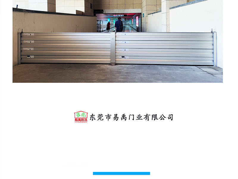 5.主要用途:運(yùn)用在商鋪、工廠、車間、地下車庫(kù)、地鐵出入口等;6.使用工具:無(wú)需任何工具,可一人操作;7.安裝時(shí)間:根據(jù)防水門塊數(shù)多少而定。以下是我司鋁合金雙跨多層型組合式防水門工程實(shí)圖: |